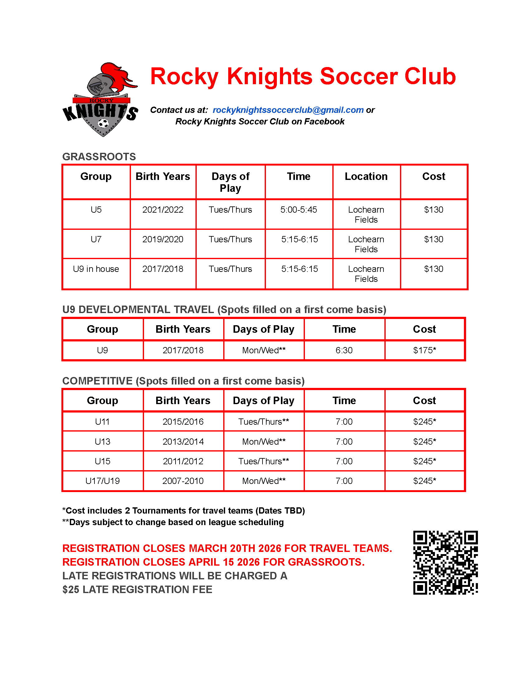 Registration closes for travel teams